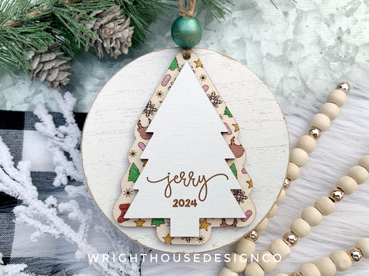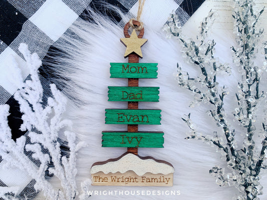 Christmas Plank Pine Tree Bundle - Personalizable Family Name Ornaments and Stocking Tags - Cut File For Glowforge Lasers - Digital SVG File