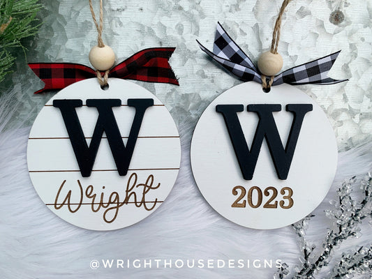 Personalized Initial and Year Christmas Ornaments - Engraved Personalizable Shiplap Ornaments - Cut File For Glowforge - Digital SVG File