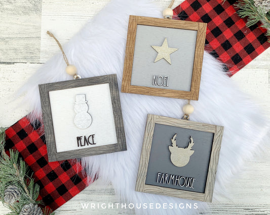 Farmhouse Frame Ornaments - Layered Christmas Square Signs - Winter Tier Tray Decor - Cut File For Glowforge Lasers - Digital SVG File