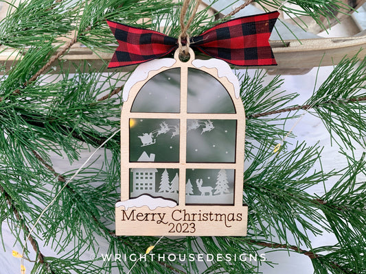 Santa's Winter Scene Layered Window Ornament Set - Engraved Personalized Christmas Ornaments - Cut File For Glowforge - Digital SVG File