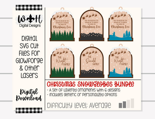 Christmas Snowglobe Ornaments - Personalizable Family Name Bundle - Layered Quick Cut and Score File For Glowforge Lasers - Digital SVG File