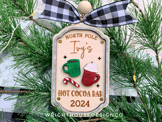 North Pole Hot Cocoa Bar Vintage Tag Family Name Ornament - Personalizable Quick Cut and Score File For Glowforge Lasers - Digital SVG Files