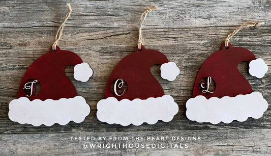Santa Hat Monogram Stocking Tags Christmas Ornament Bundle - Layered Gift Bag Tag Set - Cut File For Glowforge Lasers - Digital SVG File
