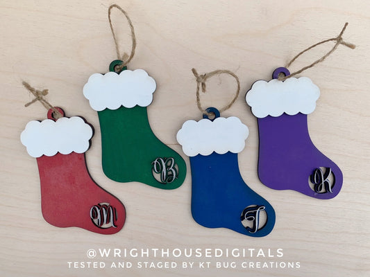Santa's Monogram Christmas Stocking Tags Ornament Bundle - Layered Gift Bag Tag Set - Cut File For Glowforge Lasers - Digital SVG File