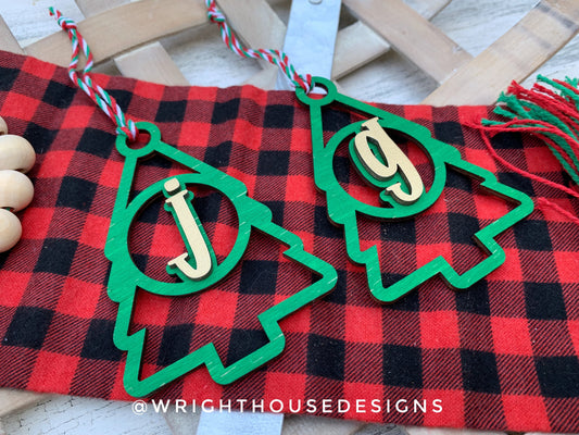 Pine Tree Monogram Stocking Tags Christmas Ornament Bundle - Quick Cut Gift Bag Tag Set - Cut File For Glowforge Lasers - Digital SVG File