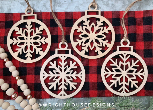 Minimalist Cut Snowflake Christmas Tree Ball Ornament Set 1 - Gift Bag Tag Bundle - Quick Cut File For Glowforge Lasers - Digital SVG File