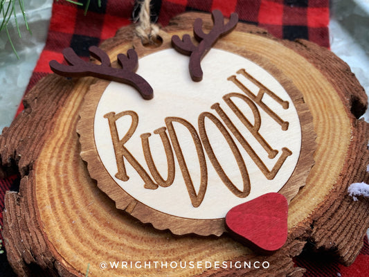 Reindeer Name Wood Slice Rustic Christmas Layered Ornament Set - Quick Cut and Engrave - Cut File For Glowforge Lasers - Digital SVG File