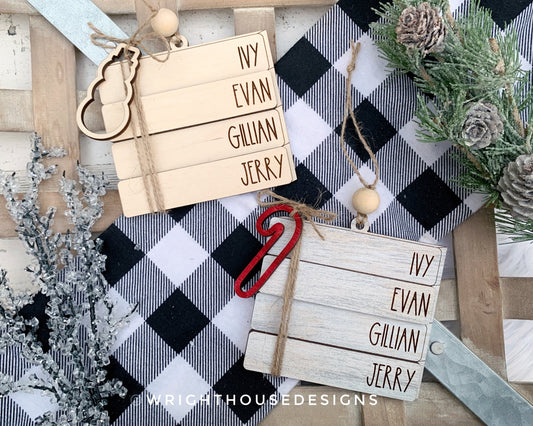 Christmas Plank Pine Tree Bundle - Personalizable Family Name Ornaments and Stocking Tags - Cut File For Glowforge Lasers - Digital SVG File