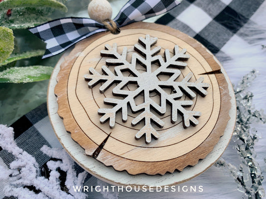 Rustic Snowflake Wood Slices - Layered Christmas Ornament Bundle - Quick Cut and Score File For Glowforge Lasers - Digital SVG File