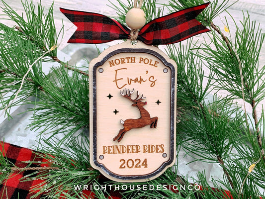 North Pole Reindeer Rides Family Name Yearly Christmas Ornament - Personalizable Quick Cut File For Glowforge Lasers - Digital SVG File