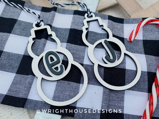 Snowman Monogram Stocking Tags Christmas Ornament Bundle - Quick Cut Gift Bag Tag Set - Cut File For Glowforge Lasers - Digital SVG File