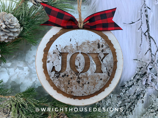 Rustic Farmhouse Stencil Wood Slices Layered Christmas Ornament Bundle - Quick Cut File For Glowforge Lasers - Digital SVG File
