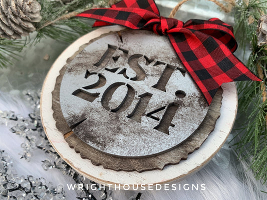 Rustic Engraved Est Layered Knockout Ornament Set - Engraved Personalizable Christmas Ornaments - Cut File For Glowforge - Digital SVG File