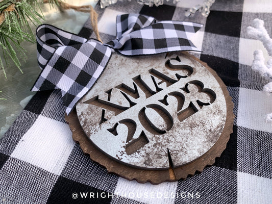 Rustic Stencil Christmas Date Wood Slices Yearly Ornament Bundle - Quick Cut Layered File For Glowforge Lasers - Digital SVG File