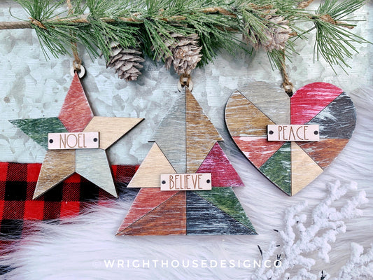 Rustic Farmhouse Quilt Pattern Line Ornaments - Minimalist Ornament Set - Quick Cut and Score File For Glowforge Lasers - Digital SVG File