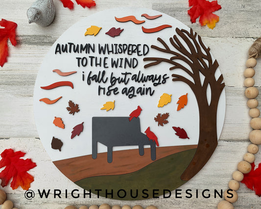 Windy Autumn Day Leaf and Cardinal Door Hanger Round - Seasonal Sign Making and DIY Kits - Cut File For Glowforge Laser - Digital SVG File