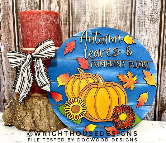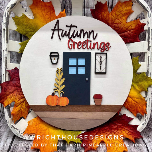 Autumn Greetings Front Porch Door Hanger Round - Seasonal Sign Making and DIY Kits - Cut File For Glowforge Laser - Digital SVG File