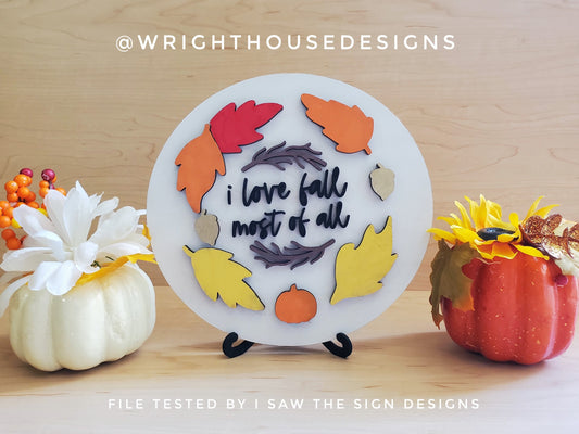 I Love Fall Most of All Foliage Autumn Round and Frame - Seasonal Sign Making and DIY Kits - Cut File For Glowforge Laser - Digital SVG File