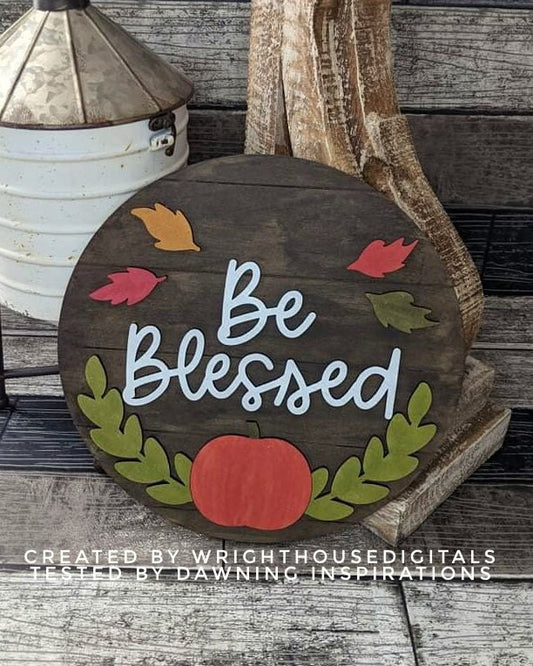 Be Blessed Pumpkin and Greenery Door Hanger - Seasonal Sign Making and DIY Kits - Cut File For Glowforge Laser - Digital SVG File
