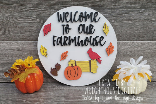 Welcome To Our Farmhouse Autumn Seasonal Round - Fall Door Hanger - Files for Sign Making - SVG Cut File For Glowforge Pro - Digital File