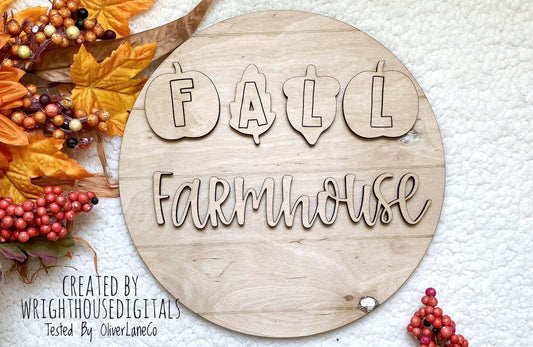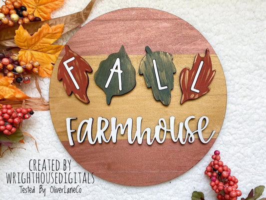 DIGITAL FILE - Fall Farmhouse - Leaves - Autumn Seasonal Round - Files for Sign Making - SVG Cut File For Glowforge