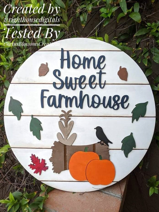 Home Sweet Farmhouse Autumn Seasonal Round - Fall Door Hanger - Files for Sign Making - SVG Cut File For Glowforge Pro - Digital File
