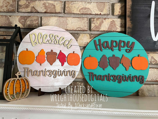 Happy and Blessed Thanksgiving Pumpkin Round Bundle - Seasonal Sign Making and DIY Kits - Cut File For Glowforge Laser - Digital SVG File