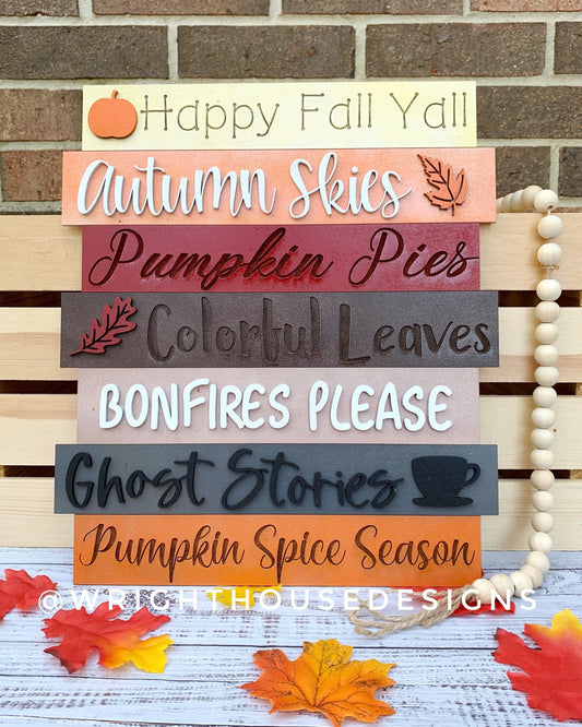 Happy Fall Yall Autumn Bucket List Stacked Sign - Seasonal Wall Decor and DIY Kits - Cut File For Glowforge Lasers - Digital SVG File