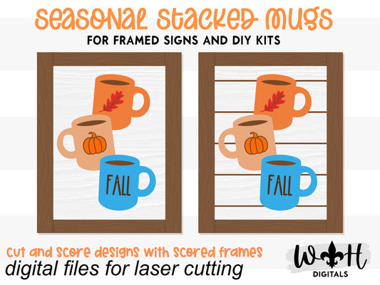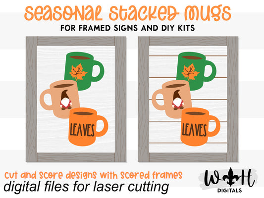 Fall Stacked Coffee Mugs Farmhouse Frame Sign - Autumn Tiered Tray Decor and DIY Kits - Cut File For Glowforge Lasers - Digital SVG File
