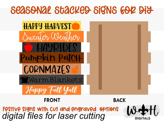 Happy Harvest Autumn Bucket List Stacked Sign - Seasonal Wall Decor and DIY Kits - Cut File For Glowforge Lasers - Digital SVG File