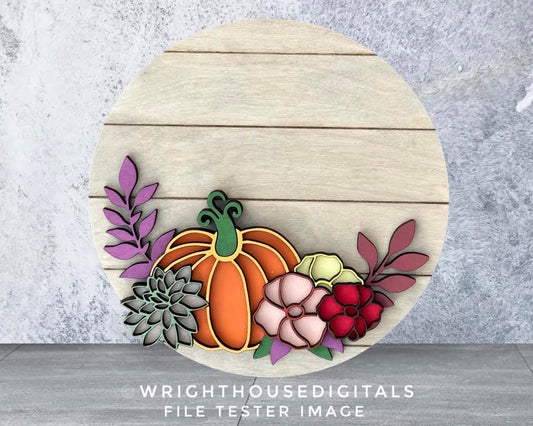 Cottagecore Pumpkin and Florals Fall Door Hanger - Files for Sign Making - Laser Cut SVG Files For Glowforge C02 Lasers - Digital File