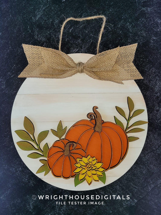 Autumn Cottagecore Pumpkins Festive Fall Door Hanger - Files for Sign Making - Laser Cut SVG Files For Glowforge C02 Lasers - Digital File