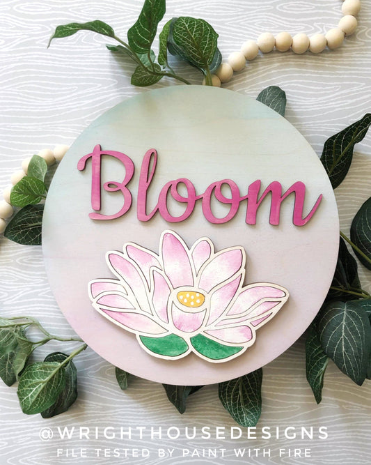 Lotus Flower Simple Floral Shelf Sitter Sign - Round Sign Making and DIY Kits - Beginner Cut File For Glowforge Lasers - Digital SVG File