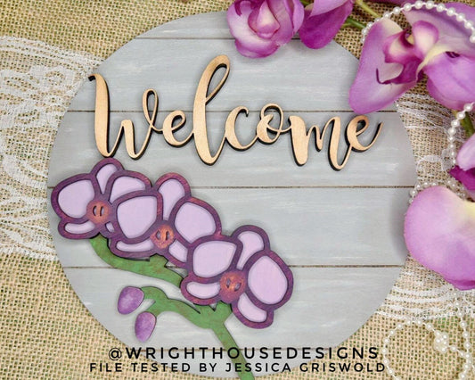 Orchid Simple Floral Shelf Sitter Sign - Round Sign Making and DIY Kits - Beginner Cut File For Glowforge Lasers - Digital SVG File