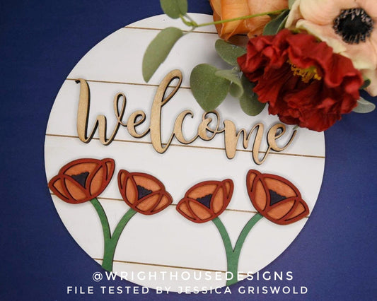 Poppy Flower Simple Floral Shelf Sitter Sign - Round Sign Making and DIY Kits - Beginner Cut File For Glowforge Lasers - Digital SVG File