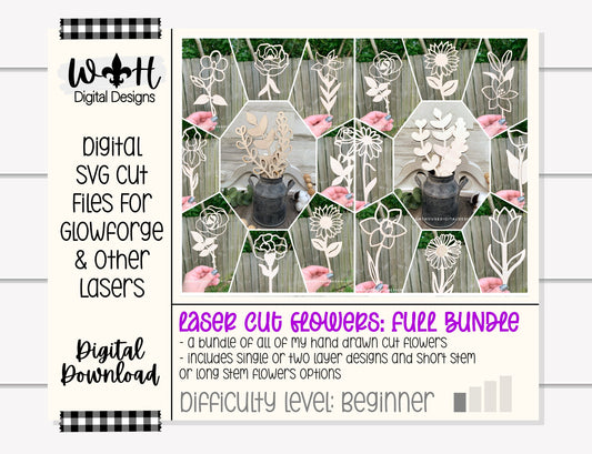 Full Laser Cut Flower Bundle - Simple Diy Florals For Bouquets - Files for Sign Making - SVG Cut File For Glowforge - Digital File