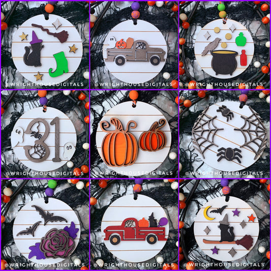 Halloween Tree Ornament Bundle - Modern Farmhouse Tiered Tray Decor - Choose A Font - Quick Cut File For Glowforge Lasers - Digital SVG File