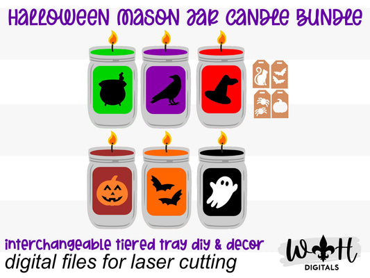 Halloween Interchangeable Mason Jar Candle Bundle - Tiered Tray Decor and DIY Kits - Cut File For Glowforge Lasers - Digital SVG File