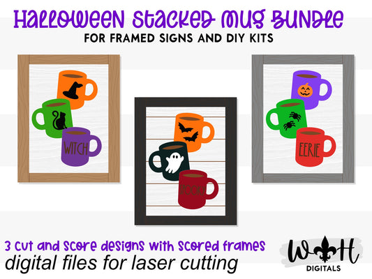 Halloween Stacked Coffee Mugs Farmhouse Frame Sign Bundle - Tiered Tray Decor and DIY Kits - Cut File For Glowforge Laser - Digital SVG File