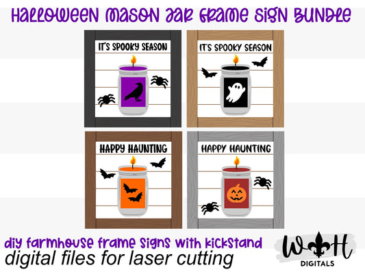 Halloween Mason Jar Candle Farmhouse Frame Sign Bundle - Tiered Tray Decor and DIY Kits - Cut File For Glowforge Lasers - Digital SVG File