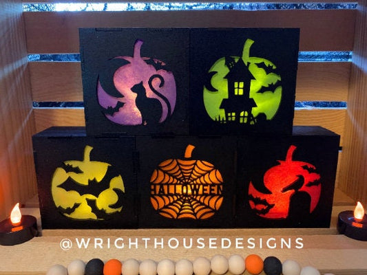 Halloween Illuminating Interlocking Shadow Boxes - Light Up Seasonal Home Decor - Quick Cut File For Glowforge Lasers - Digital SVG File