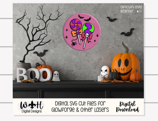 Tricks and Treats Halloween Lollipops - Seasonal Door Hanger Round - Sign Making and DIY Kits - Digital SVG Cut File For Glowforge Laser