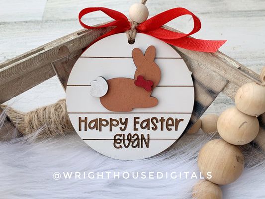 Easter Bunny Personalized Shiplap Basket Tags - Seasonal Tiered Tray Decor and DIY Kits - Cut File For Glowforge Lasers - Digital SVG File