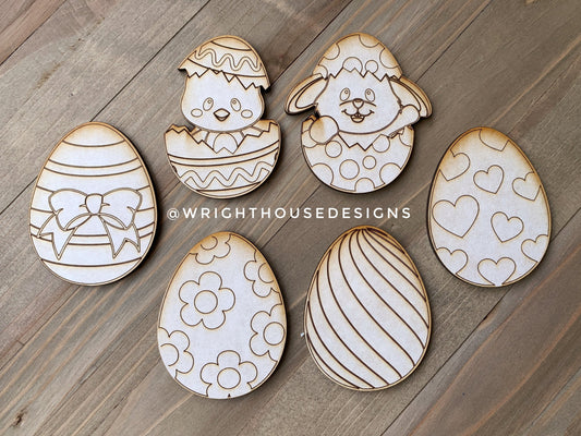 Easter Bunny Color Eggs and Bunny Basket Tags - Seasonal Tiered Tray Decor and DIY Kits - Cut File For Glowforge Lasers - Digital SVG File