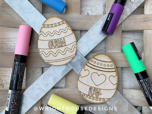 Easter Bunny Color Eggs and Personalizable Basket Tags - Tiered Tray Decor and DIY Kits - Cut File For Glowforge Lasers - Digital SVG File