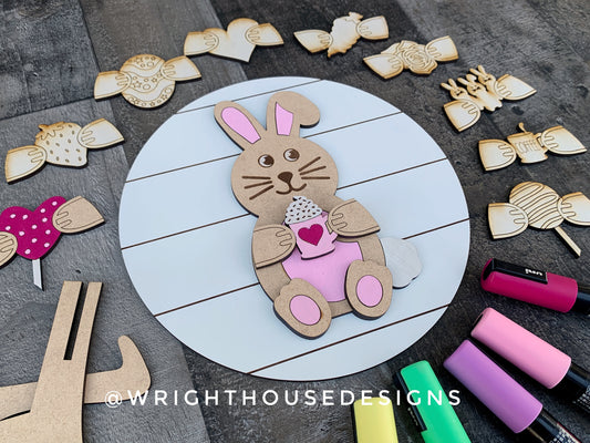 Valentine Easter Bunny Interchangeable Shelf Sitter Round - Seasonal Decor and DIY Kits - Cut File For Glowforge Lasers - Digital SVG File