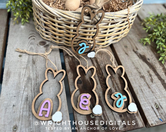 Easter Bunny Monogram Basket Tags Bundle - Seasonal Tiered Tray Decor and DIY Kits - Quick Cut File For Glowforge Lasers - Digital SVG File