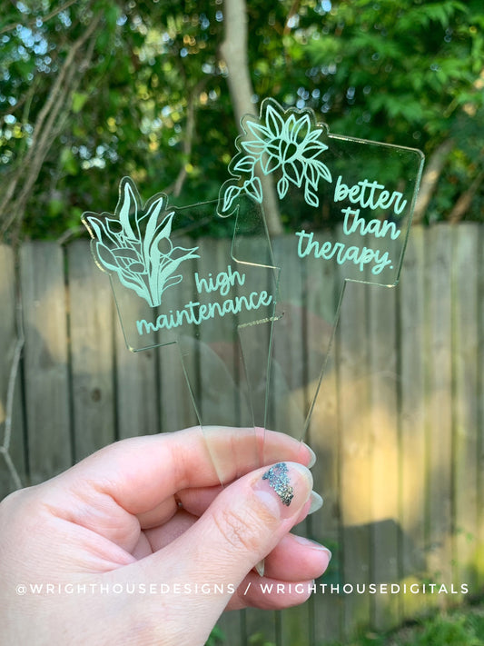 Funny Potted House Plant Stakes Set 2 - Garden and Seed Cultivation Organization - Handdrawn Engraved File For Glowforge - Digital SVG File