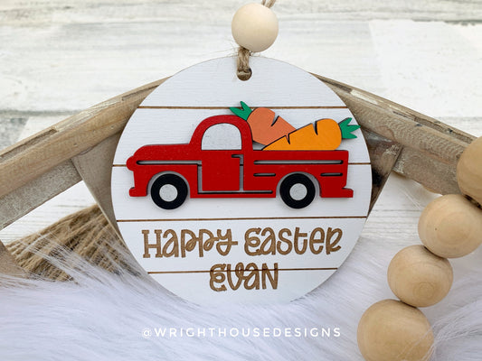Easter Truck Personalized Shiplap Basket Tags - Seasonal Tiered Tray Decor and DIY Kits - Cut File For Glowforge Lasers - Digital SVG File
