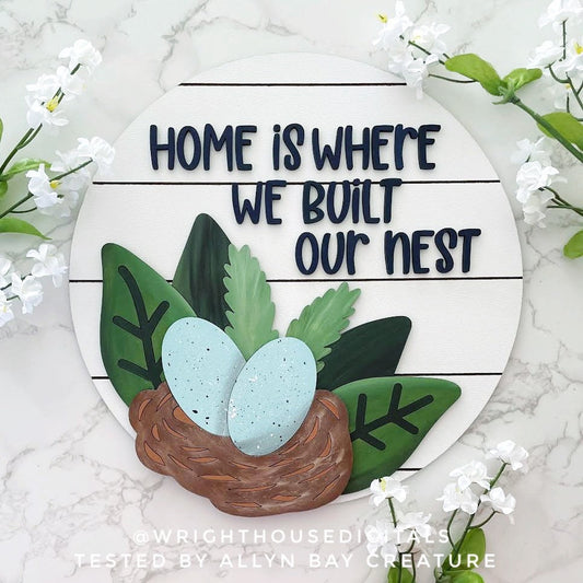 Home Is Where We Built Our Nest Spring Door Hanger - Seasonal Sign Making and DIY Kits - Cut File For Glowforge Lasers - Digital SVG File